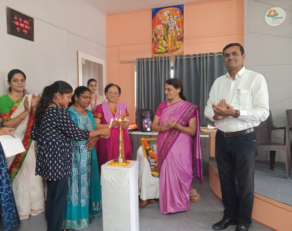 जळगाव- केसी ई सोसायटी संचलित मू. जे. महाविद्यालयात युवती सभेचे उद्घाटन दि. १२ सप्टेंबर २०२५ रोजी संपन्न झाले. या कार्यक्रमा अंतर्गत, विद्यार्थिनींचे आरोग्य व समस्या लक्षात घेऊन योग व ध्यान प्रशिक्षण देण्यात आले.युवती सभेचे उद्घाटन के. सी. ई. संस्थेच्या शैक्षणिक संचालिका डॉ. मृणालिनी फडणवीस यांच्या हस्ते झाले. याप्रसंगी अध्यक्ष म्हणून वाणिज्य शाखेच्या उप-प्राचार्य डॉ. सुरेखा पालवे, युवती सभेच्या अध्यक्षा डॉ. स्वप्नाली वाघुळदे, योग मार्गदर्शक म्हणून डॉ. देवानंद सोनार व डॉ. ज्योती वाघ आदी उपस्थित होते.साधारण वार्षिक पातळीवर युवती सभेंतअंतर्गत आयोजित होणाऱ्या कार्यक्रमांचा आढावा युवती समिती अध्यक्षा यांनी दिला. डॉ. फडणवीस यांनी युवतींना शिक्षण व करियर घडविताना योग आणि आरोग्य यांचे महत्व सांगितले व युवती सभेच्या उपक्रमांमध्ये सहभागी होण्याचे आवाहन केले. डॉ. सुरेखा पालवे यांनी अध्यक्षीय भाषणातून शिक्षण व स्त्री-सबलीकरण याचा संदेश दिला. या नंतर योग मार्गदर्शकांनी प्रशिक्षण दिले.कार्यक्रमाचे सूत्रसंचालन कु. नीलम पाटील या विद्यार्थिनीने केले. तर आभार प्रदर्शन प्रा. देवेश्री सोनवणे यांनी केले. या कार्यक्रमाकरता सर्व समिती सदस्य प्रा. हेमलता पाटील, डॉ. योगिनी राजपूत, डॉ. कविता पाटील, डॉ. नयना पाटील, प्रा. सोनाली शर्मा, डॉ. प्रतिभा तिवारी आणि हरीश चौधरी यांचे सहकार्य लाभले.